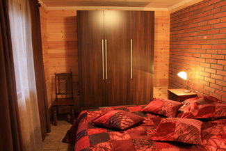 Alakerrassa olevassa makuuhuoneessa on tilava kaappi sekä täysleveä parivuode. Pikkuväelle on varattu matkasänky ja muutamia leluja.